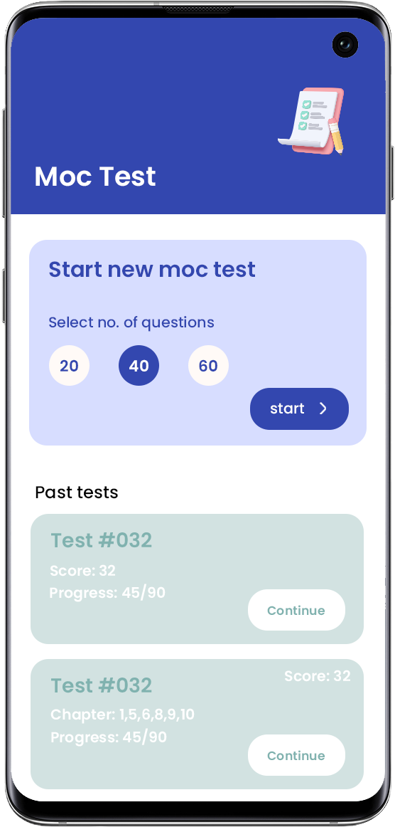 Our test section let you create unlimited mock tests based on your selections. Practice with realtime generated mocktests and track your performance. Left the test half way? no worries, you can continue any test from where you left it and also track the score and progress.